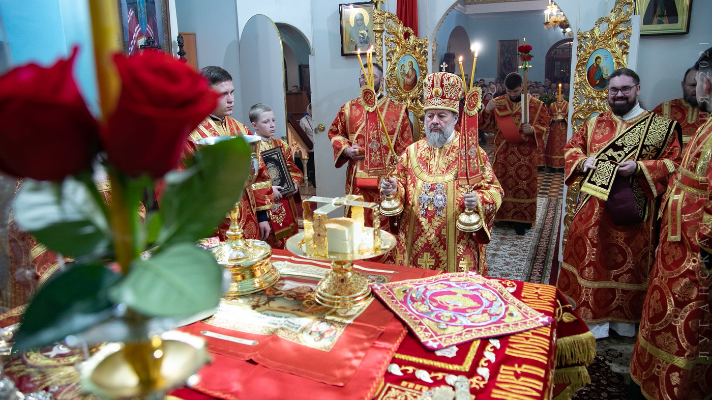 После сугубой ектении владыка вознес молитву о мире и умножении любви среди народа Отечества нашего и молитву «во время распространения вредоносного поветрия».