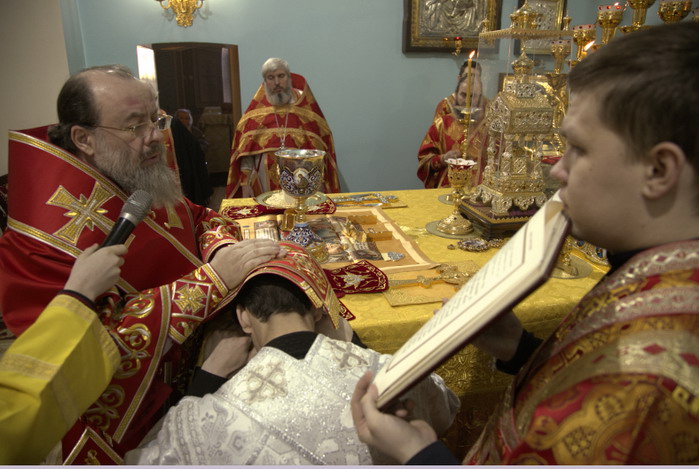 После Евхаристического канона, владыка рукоположил ставленника – Павла Демьяновского во диакона.